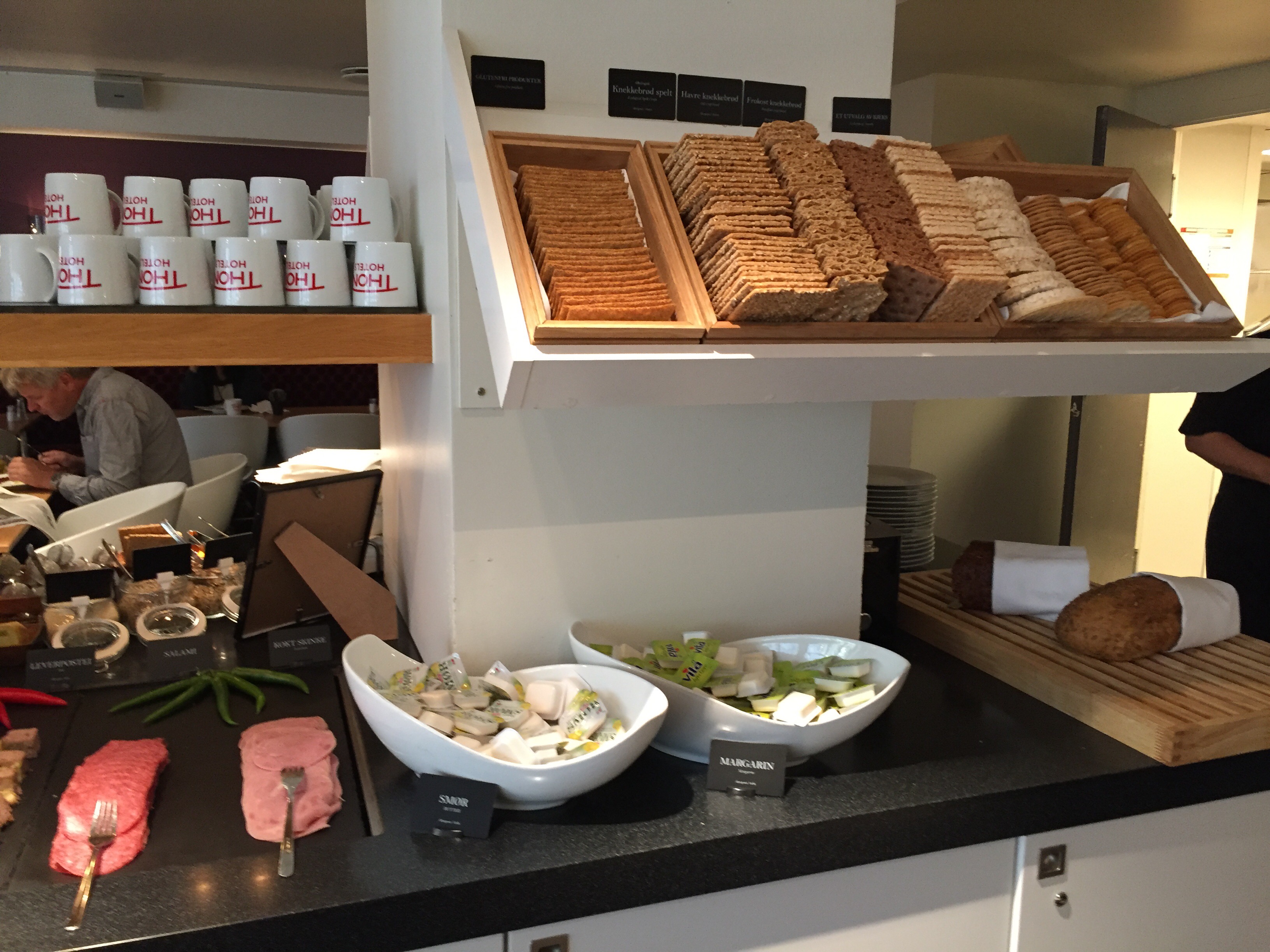 Well, only one of these happens to be a part of a “traditional Norwegian breakfast”. Cantaloupe. The “traditional Norwegian breakfast”, for travelers anyway, is simple and varied. There are a variety of whole grain, seedy breads, knekkebrod (crisp bread), and crackers. The bread is not intended to be toasted, rather it’s purpose is to be topped–open sandwich style, picking it up to be eaten carefully, or when topped with multiple toppings most often eaten with fork and knife.